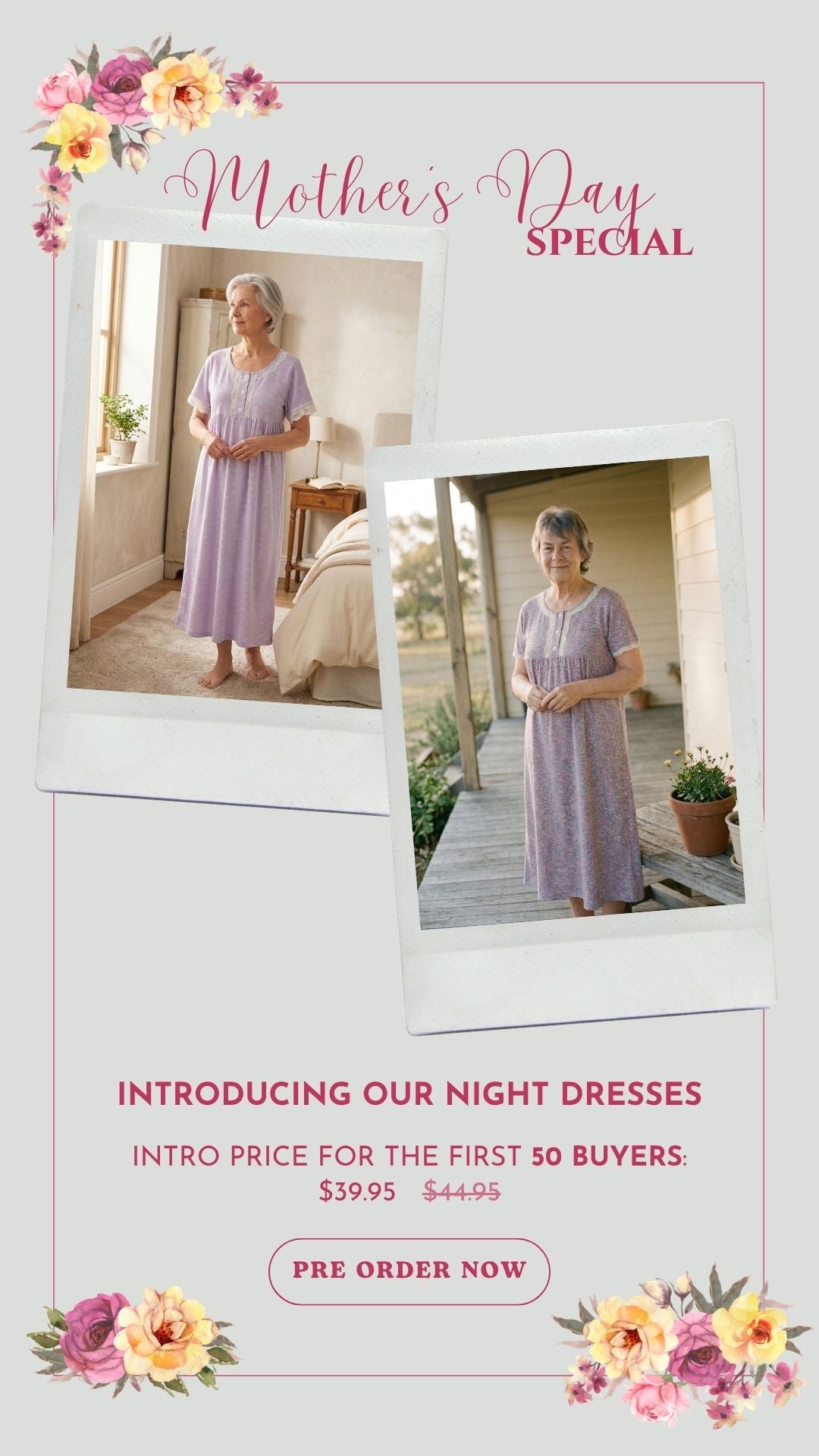 Mum loves this style, easy to put on for the elderly, no ironing, looks great on.